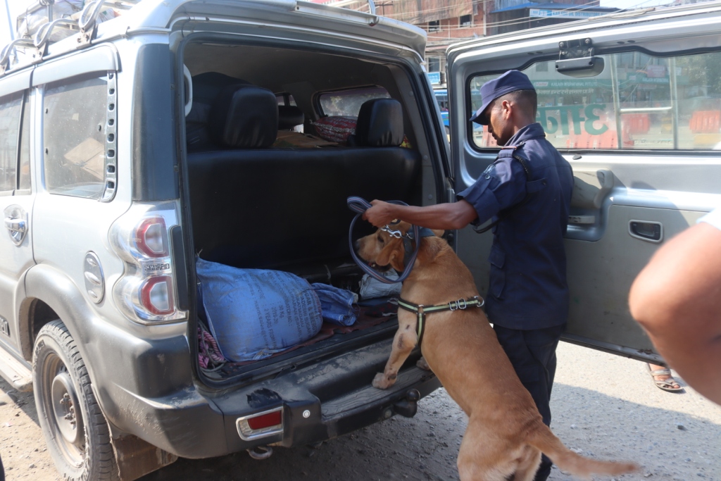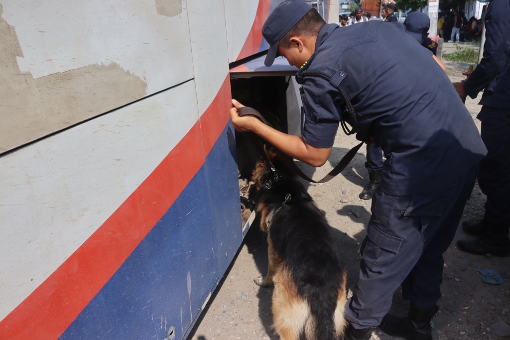 बागमती प्रदेश प्रहरी कार्यालय हेटौँडाले प्रेस विज्ञप्ती जारी गर्दै तालिम प्राप्त कुकुरसहित खटिएको प्रहरी टोलिले विष्फोटक पदार्थ, लागु औषध ओसारपोसार र सम्भावित अवाञ्छित क्रियाकलाप गरी भाग्न सक्ने शंकित व्यक्तिको चेकजाँच गरिएको बताएको छ ।