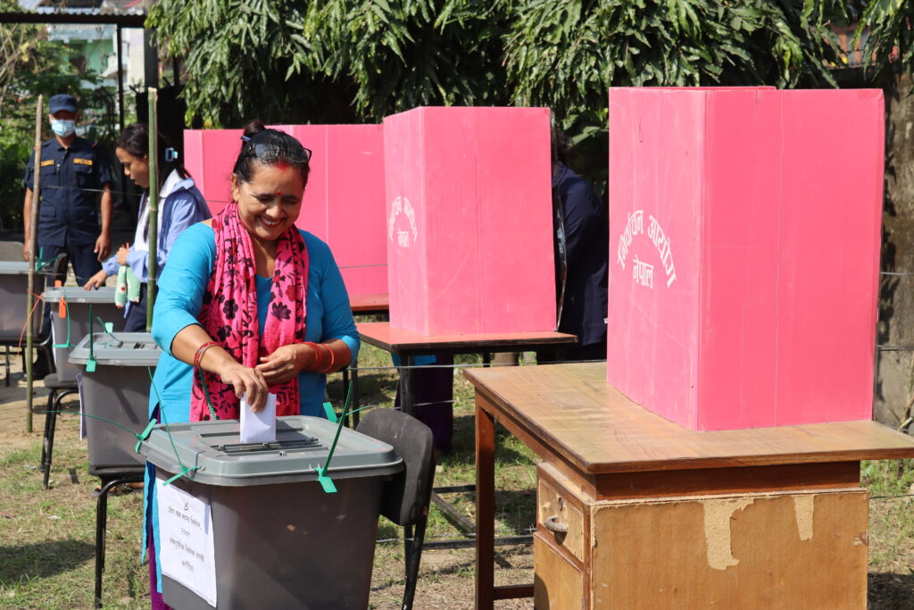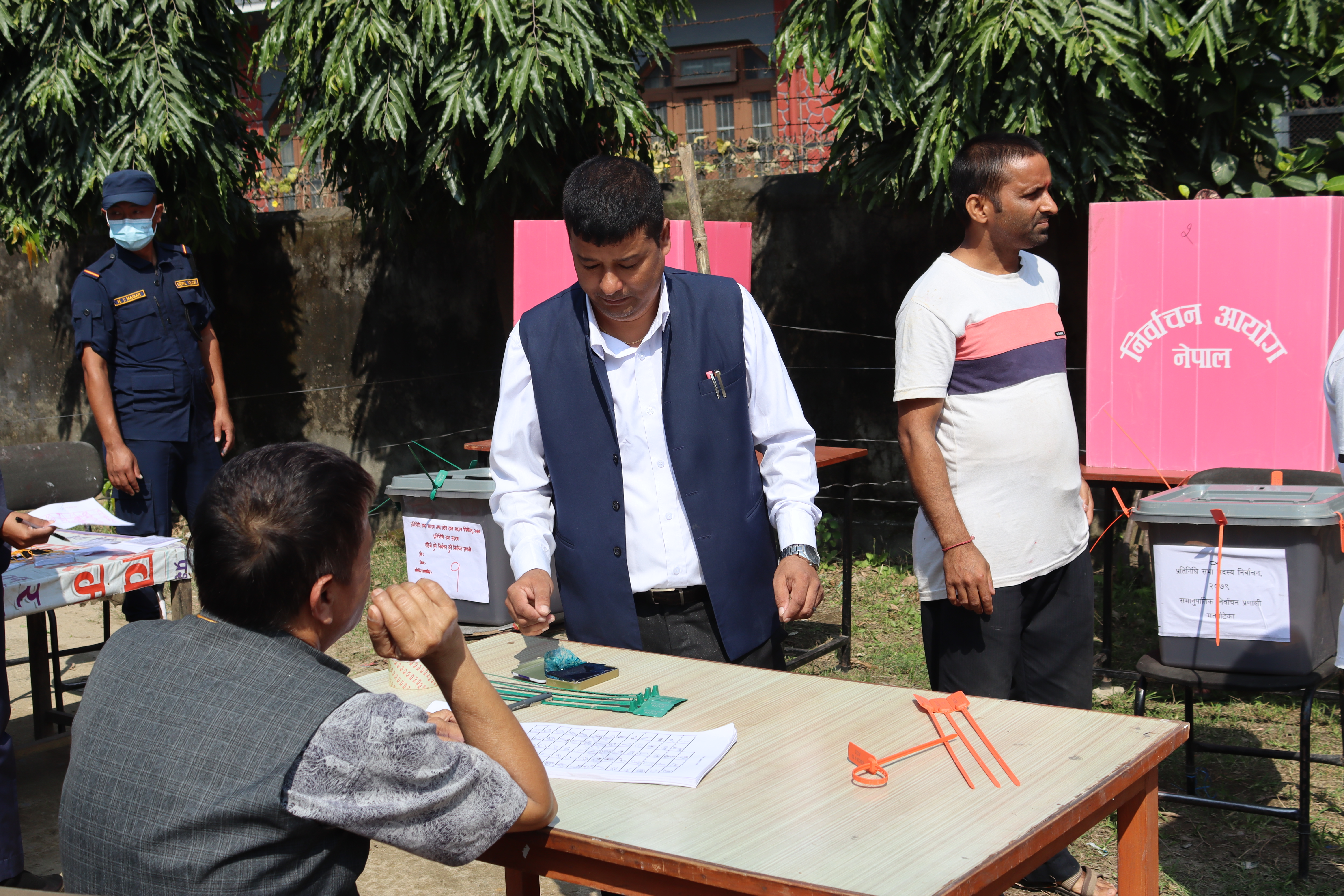 चितवन । आगामी मंसिर ४ गते हुने प्रतिनिधि सभा र प्रदेश सभा निर्वाचनका लागि चितवनमा नमुना मतदान गरिएको छ । जिल्ला निर्वाचन कार्यालय चितवनमा नमुना मतदान गरिएको हो । नमुना मतपत्रमा नमुना निर्वाचन चिह्न राखेर नमुना मतदान गरिएको हो ।