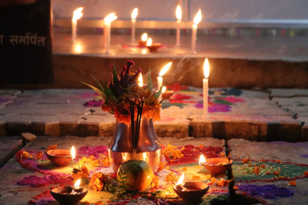 चितवन । उज्यालो पर्व तिहार अन्तर्गत अहिले घरघरमा धनधान्यकी देवी लक्ष्मीको पूजा गरिएको छ। लक्ष्मीपूजाको अवसरमा घर आगनमा लक्ष्मीको पूजा गरी दियो वा मैनबत्ती बालेर झिलिमिली बनाउने प्रचलन छ ।