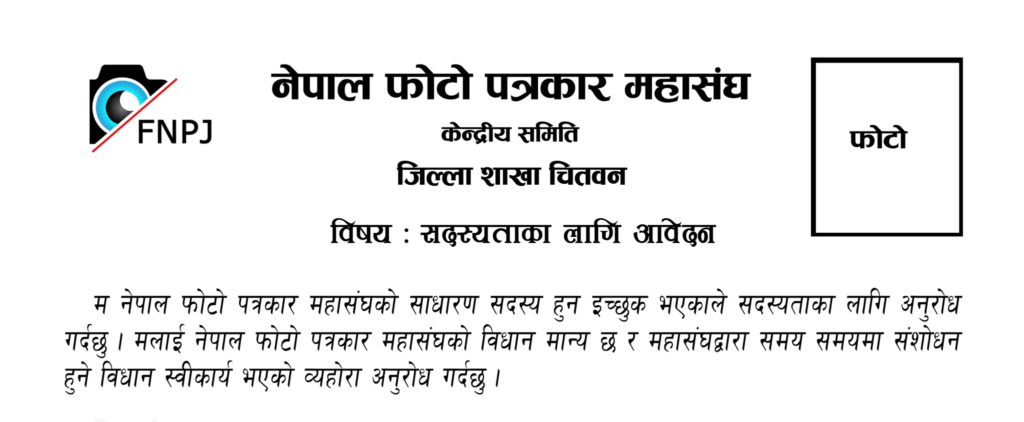चितवन । फोटो पत्रकारहरुको छाता सङ्गठन नेपाल फोटो पत्रकार महासंघ चितवन शाखाले सदस्यता आह्वान गरेको छ । जिल्ला शाखाको आइतबार बसेको बैठकले सदस्यता खुला गरेको हो ।