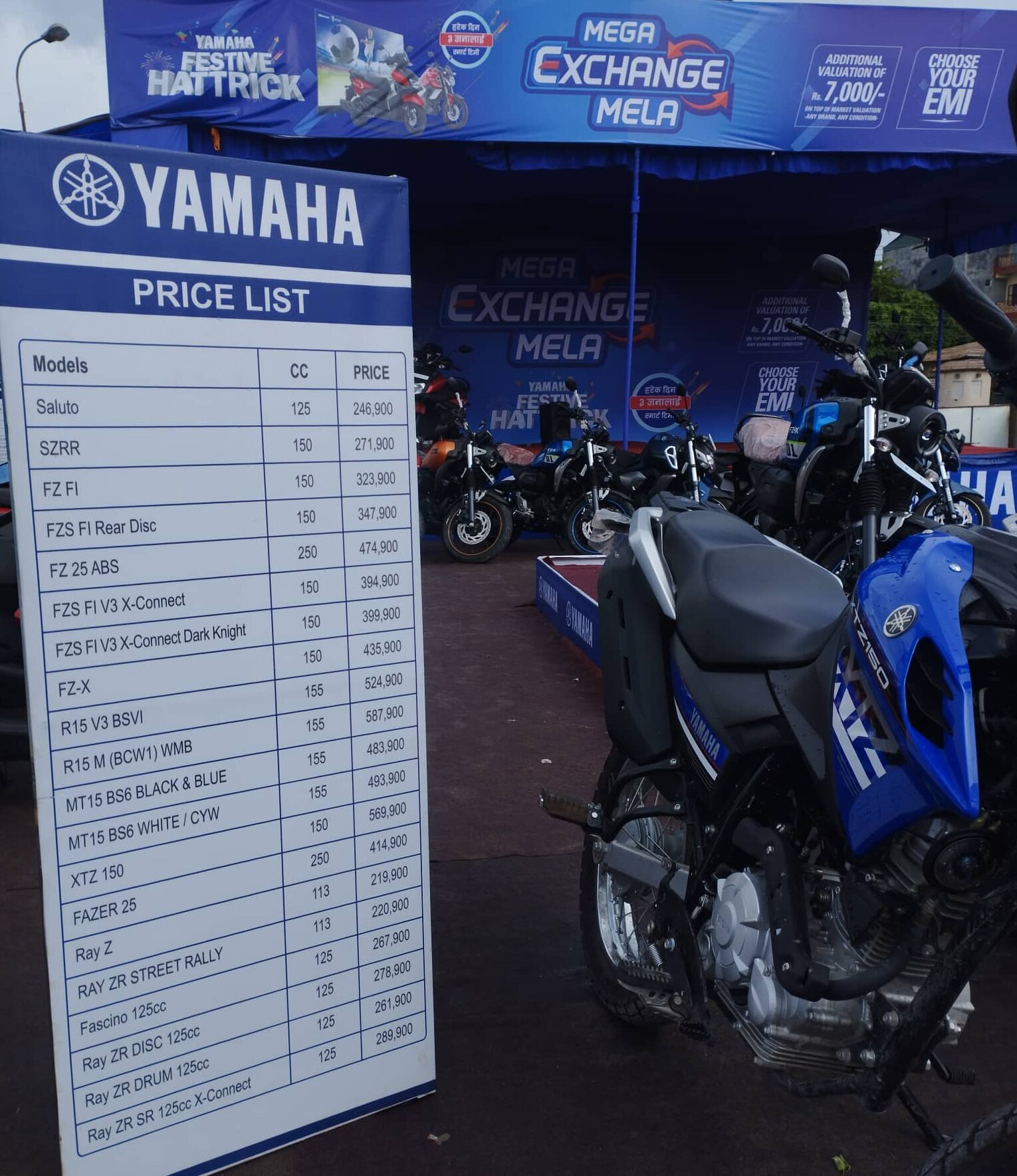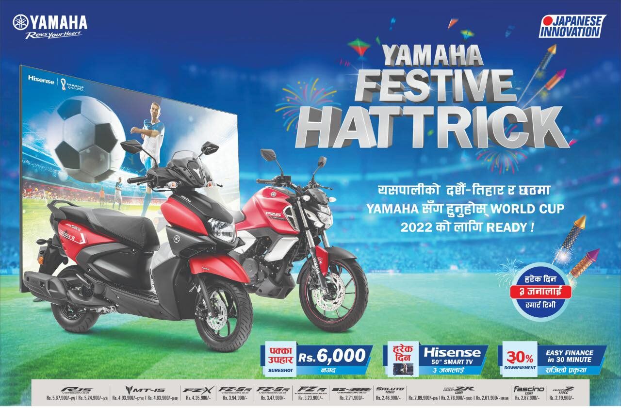 मेलामा हरेक दिन ‘लक्की ड्र बाट तीन जनाले ५० इन्चको स्मार्ट टिभी पाउने यामाहा मेगा एक्सचेन्ज मेलाको मूख्य अफर रहेको छ । उक्त मेलामा नगद बाइक किन्दा ६ हजारसम्म छुट पाइने विश्वकर्माले जानकारी दिएका छन् । त्यस्तैगरि, मेलाको अवधिभर जुनसुकै ब्राण्डको बाइक एक्सचेन्ज गर्दा सात हजार रुपैँया थप मुल्याङकन गरिने उनको भनाई छ ।